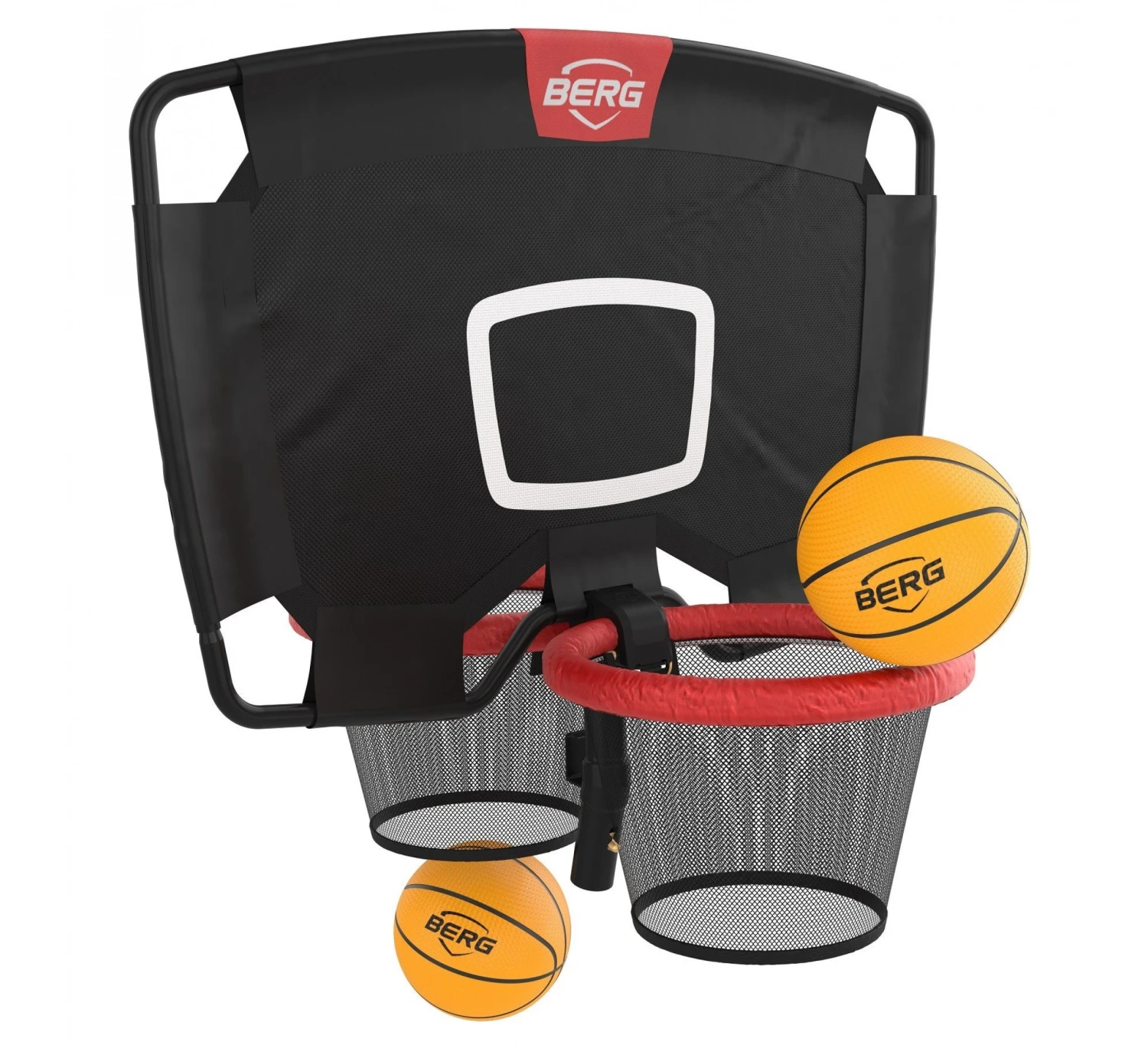 Maak je BERG trampoline compleet met de BERG Basketball TwinHoop. Met deze Basketball TwinHoop vermaak jij je nog langer op jouw trampoline. De Basketball TwinHoop is alleen geschikt voor BERG trampolines met net. Deze accessoire past op zowel het veiligheidsnet Deluxe (XL) als op het veiligheidsnet Comfort. De BERG Basketball TwinHoop is aan beide zijden voorzien van een baketbalring. Dit betekent twee keer zoveel plezier! Je kunt zowel vanaf de trampoline als vanaf de grond aan de andere zijde proberen te scoren.
